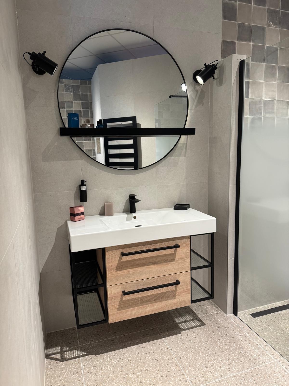 Inclusief Ronde spiegel, verlichting en kraan